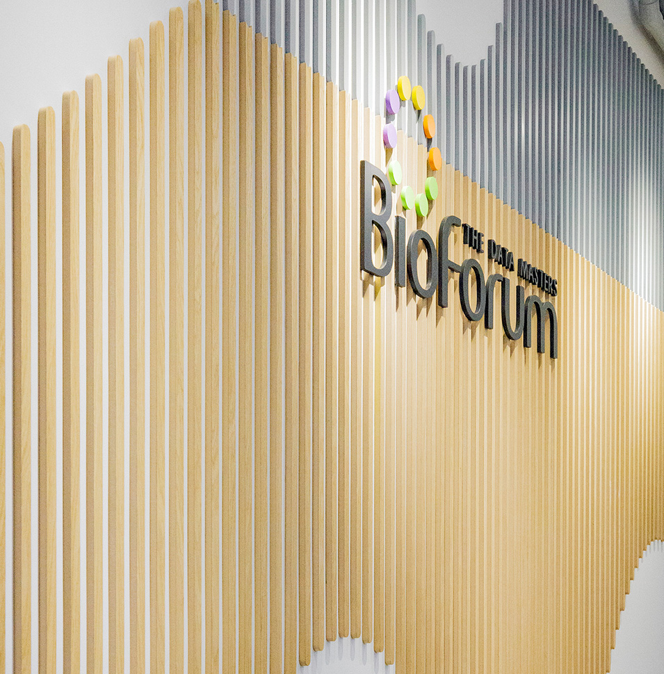 The design concept combined natural materials and minimalist branding to produce a luxurious and clean look that corresponds with the center's values.