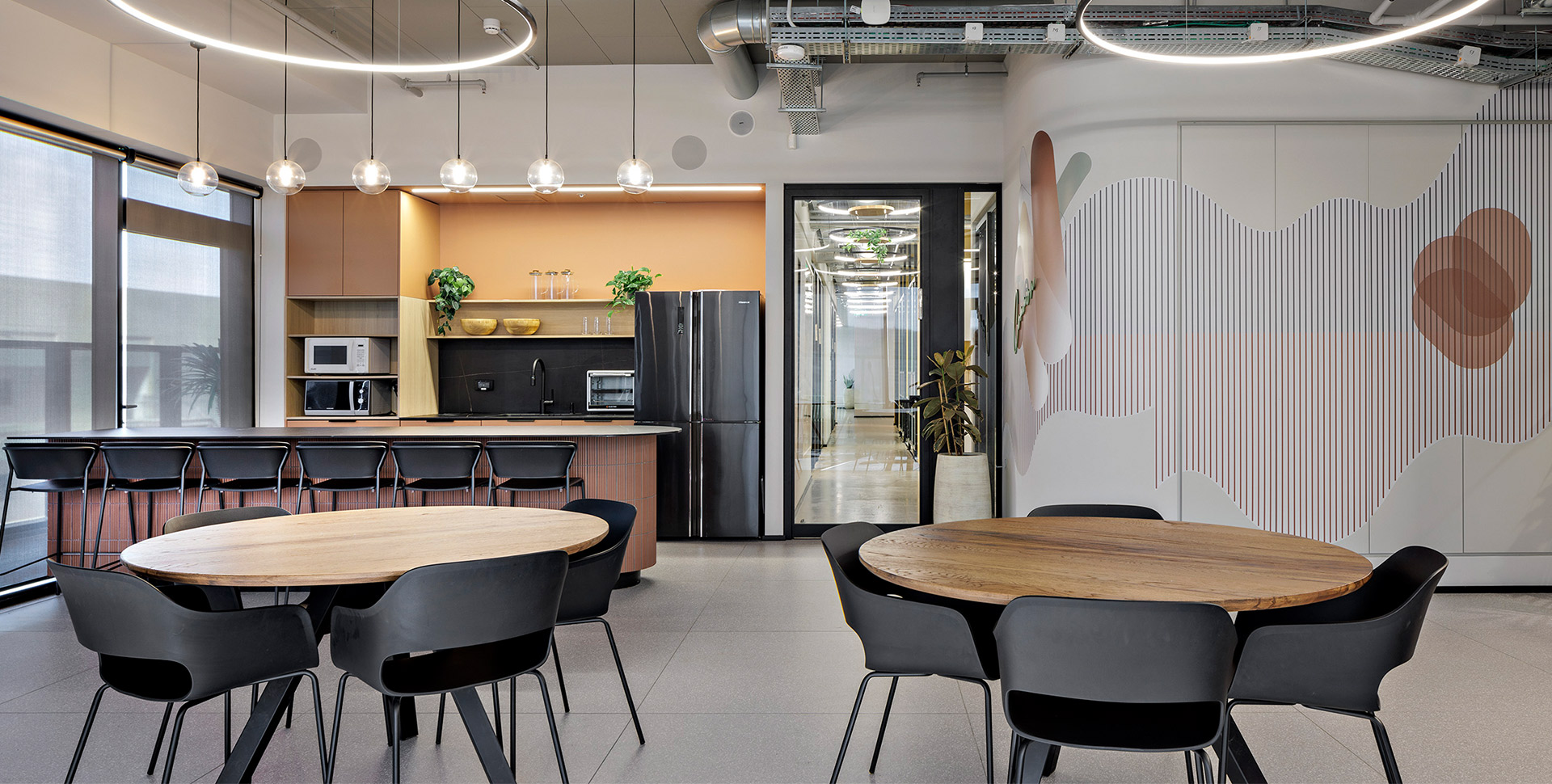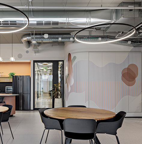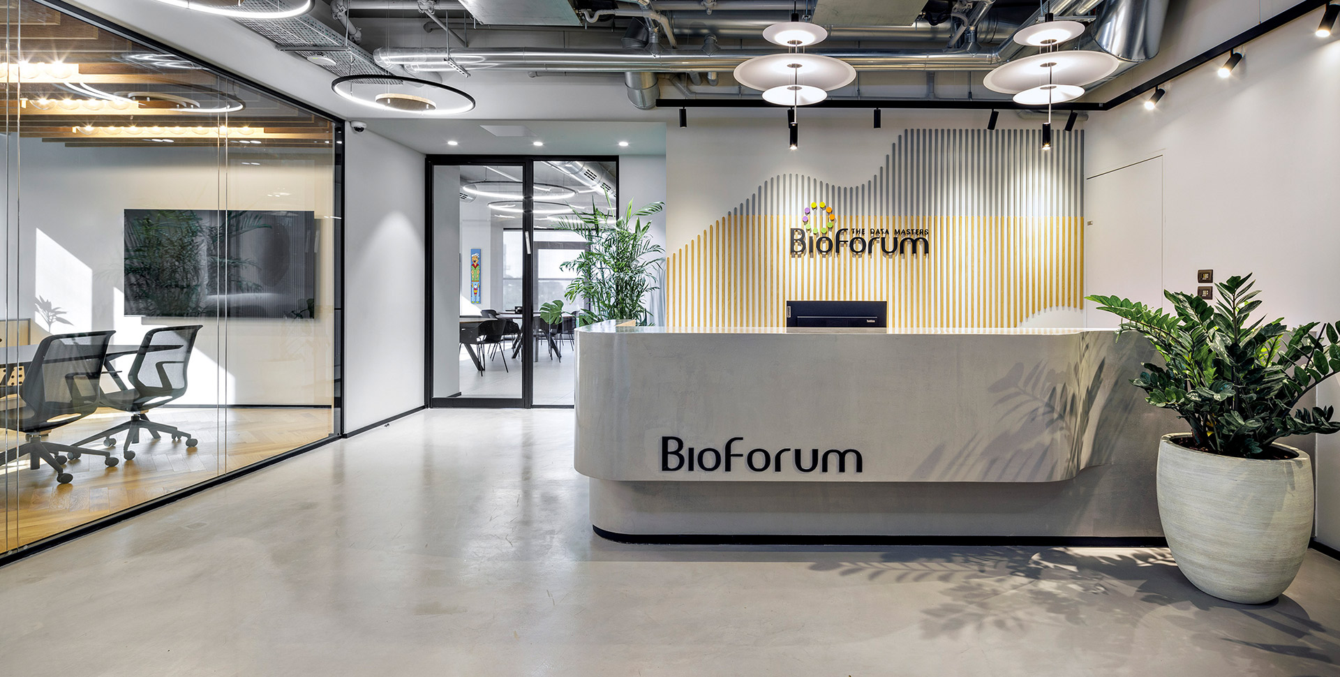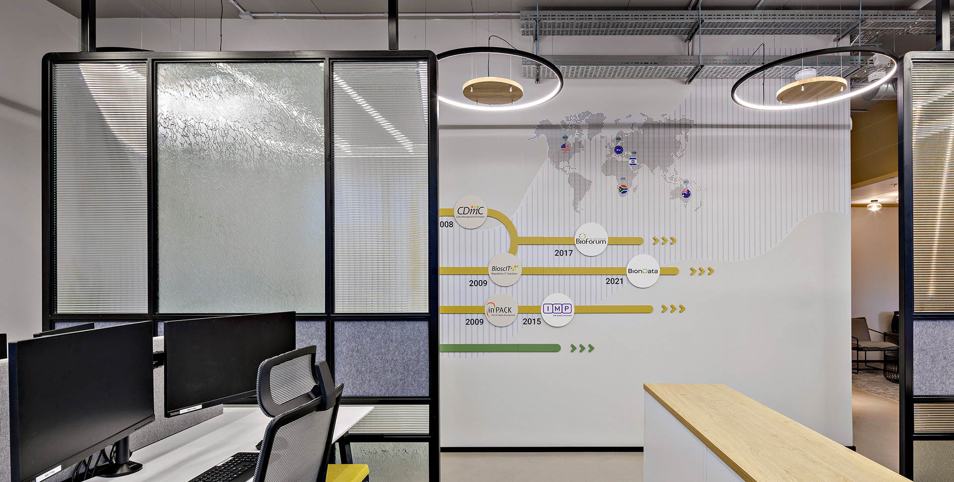 In the lobby of the offices we chose a settled line and made use of wooden bars polished and painted in the oven, while designing the logo in 3D.