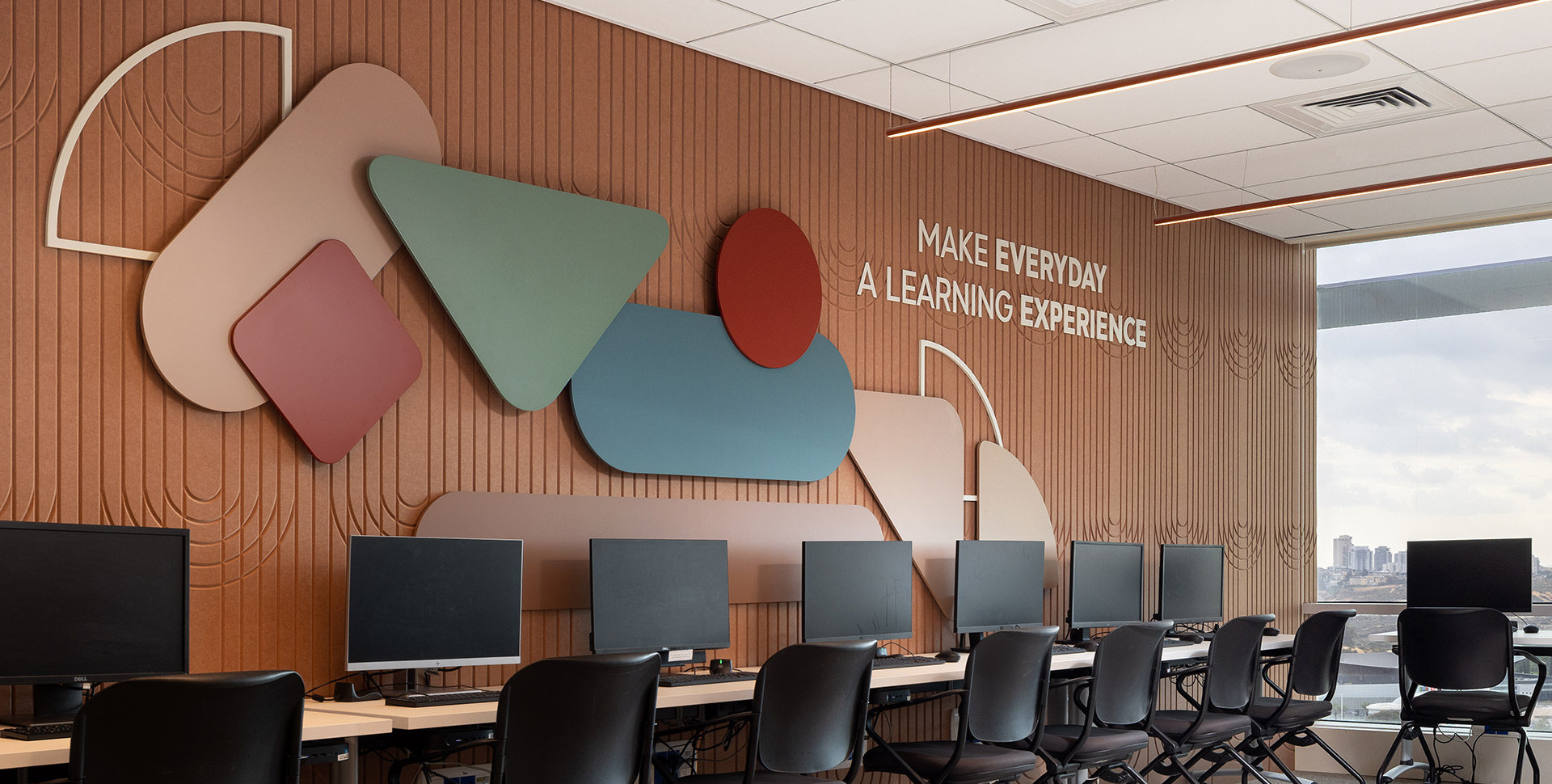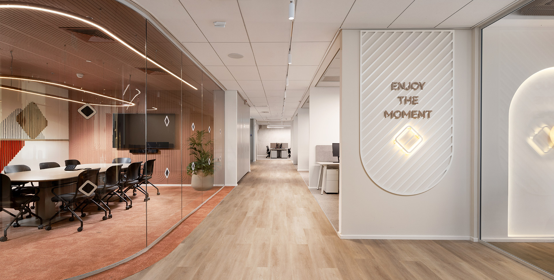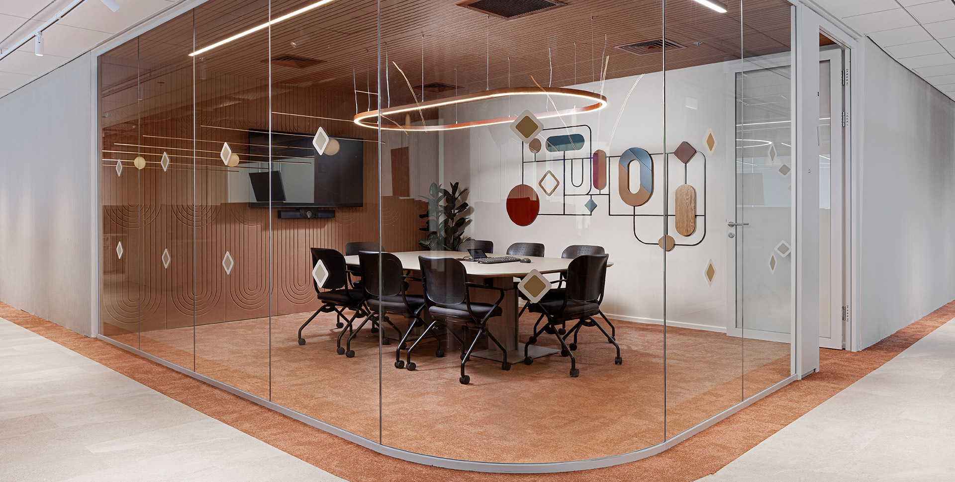 which incorporates allusions from the bank's branding language and these were imprinted on 3D elements made of sculpted and painted MDF.